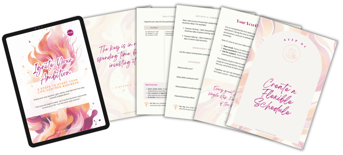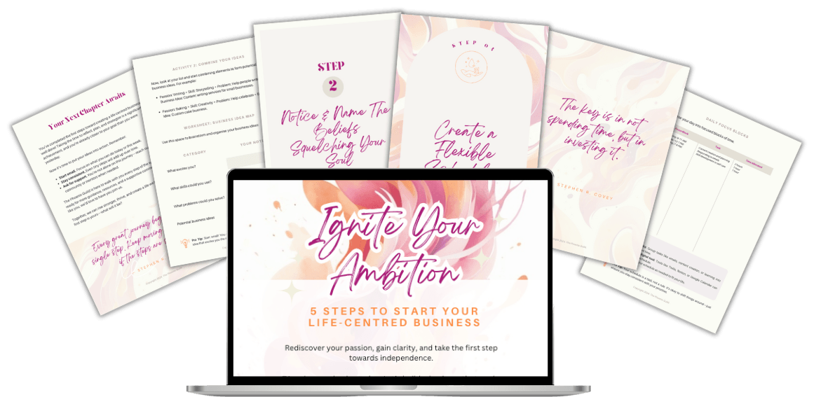 Ever wonder how some people create a business that fits their life perfectly? In my FREE Guide, you will learn the 5 steps to ignite your ambition and finally design a business that gives you freedom, flexibility, and financial security.